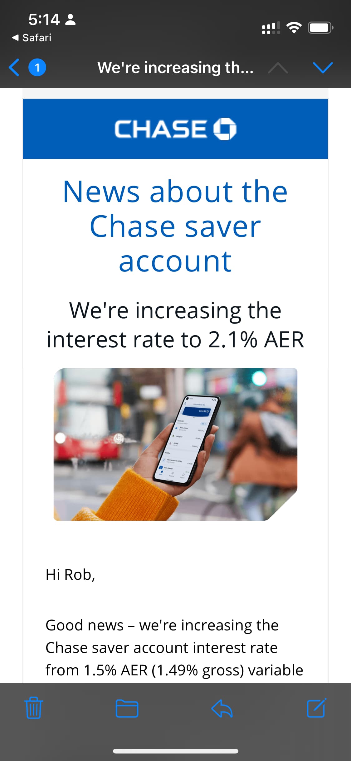 I’m personally ambivalent regarding Chase. They’ve now increased the interest rate to 2.1%, which is a move in the right direction, though.