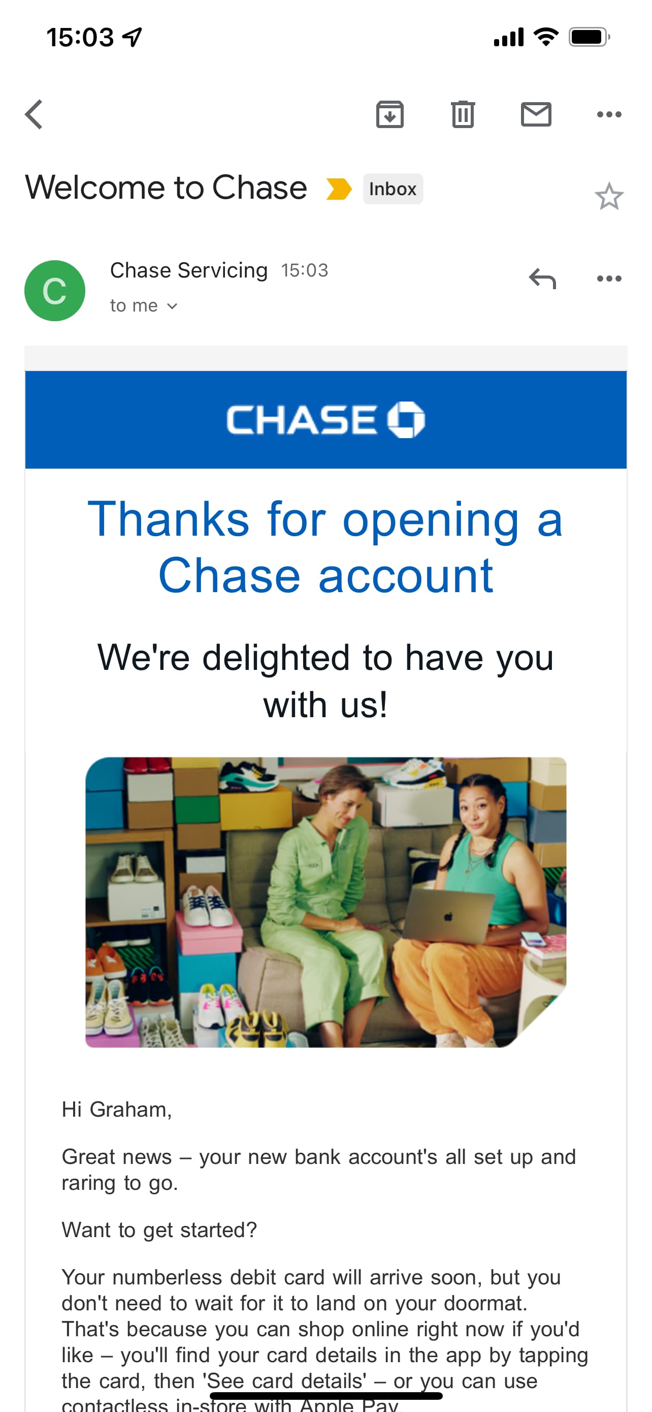 Anyway, stop distracting me! Do you find the Chase app a bit crap? or is it just me? Yes, already, I want dark mode and the ability to put a lovely photo of my ugly face in the little circle, just like I’ve done on my Starling account.