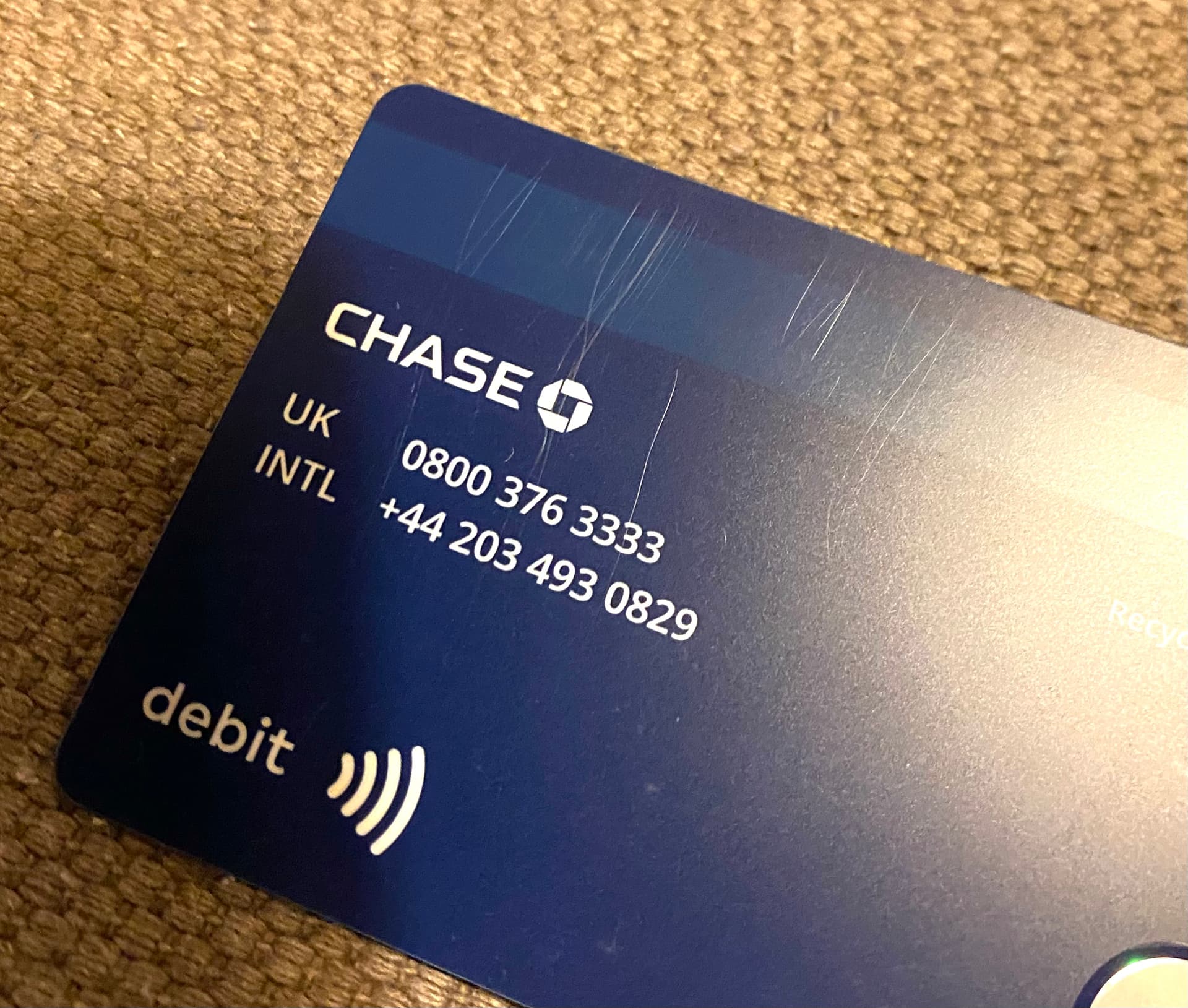 I’ve never had a card scratch up like this, not even store loyalty cards or council library cards! Disappointing, especially since the novel card design was a main attraction to Chase for me.