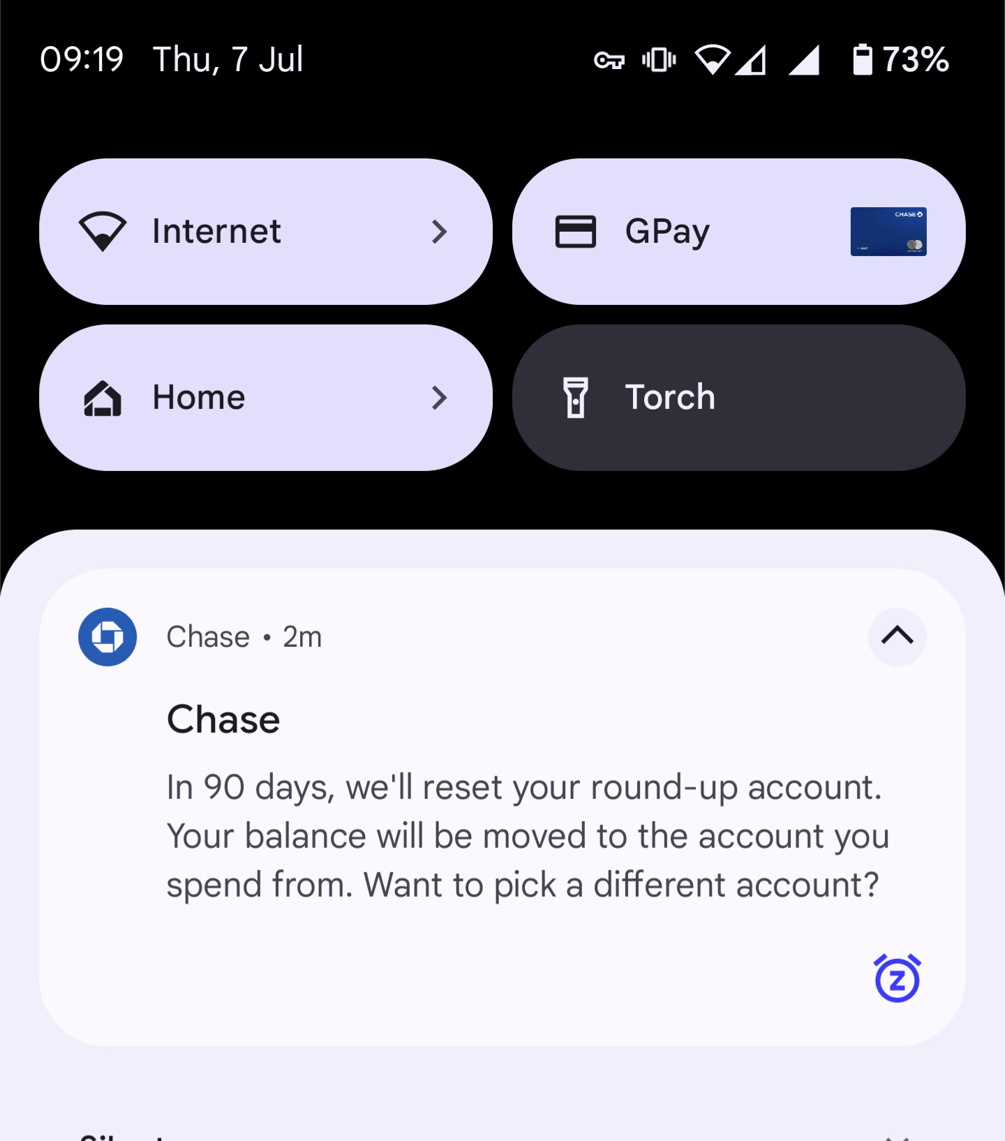 Tapping it takes you to a list of your accounts so you can choose where the proceeds go.