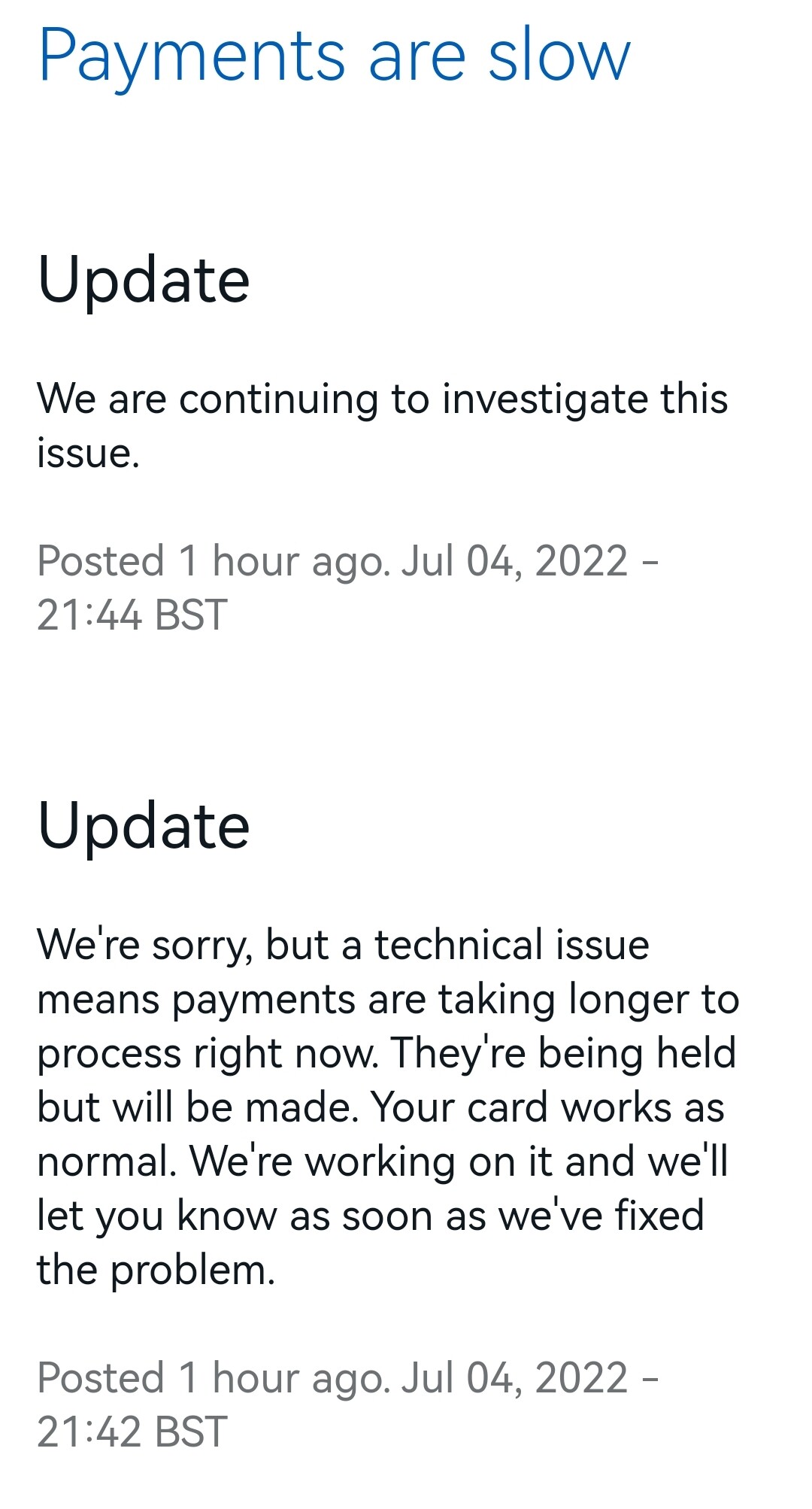 Whilst the intrepid explorers here are irritated by the disruption, there’s no real sense of whether it’s bothering Chase yet. Chances are, they’re ahead of prediction on account uptake so haven’t got to the worried-look stage.