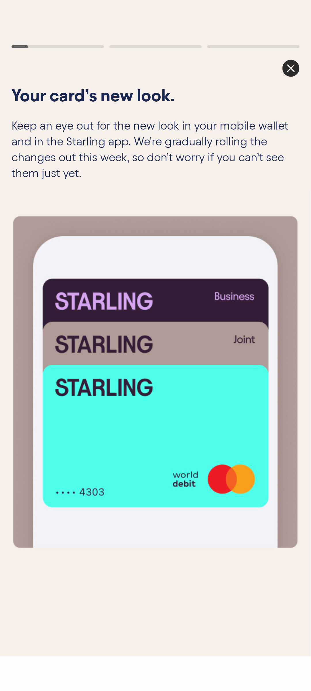 I have access to the “new look” now. It changed… nothing in the app. It’s just the icon and a couple of other very small components (like the transfer between accounts isn’t a small starling logo now, it’s just an S)
