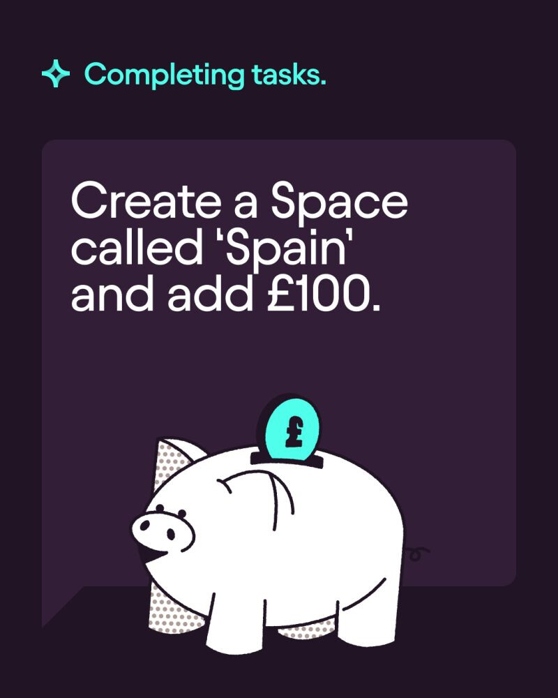 • Money goals. Starling Assistant can create a new Space for you, give it a name, set a target, add money and set up a regular transfer. You barely need to lift a finger.
