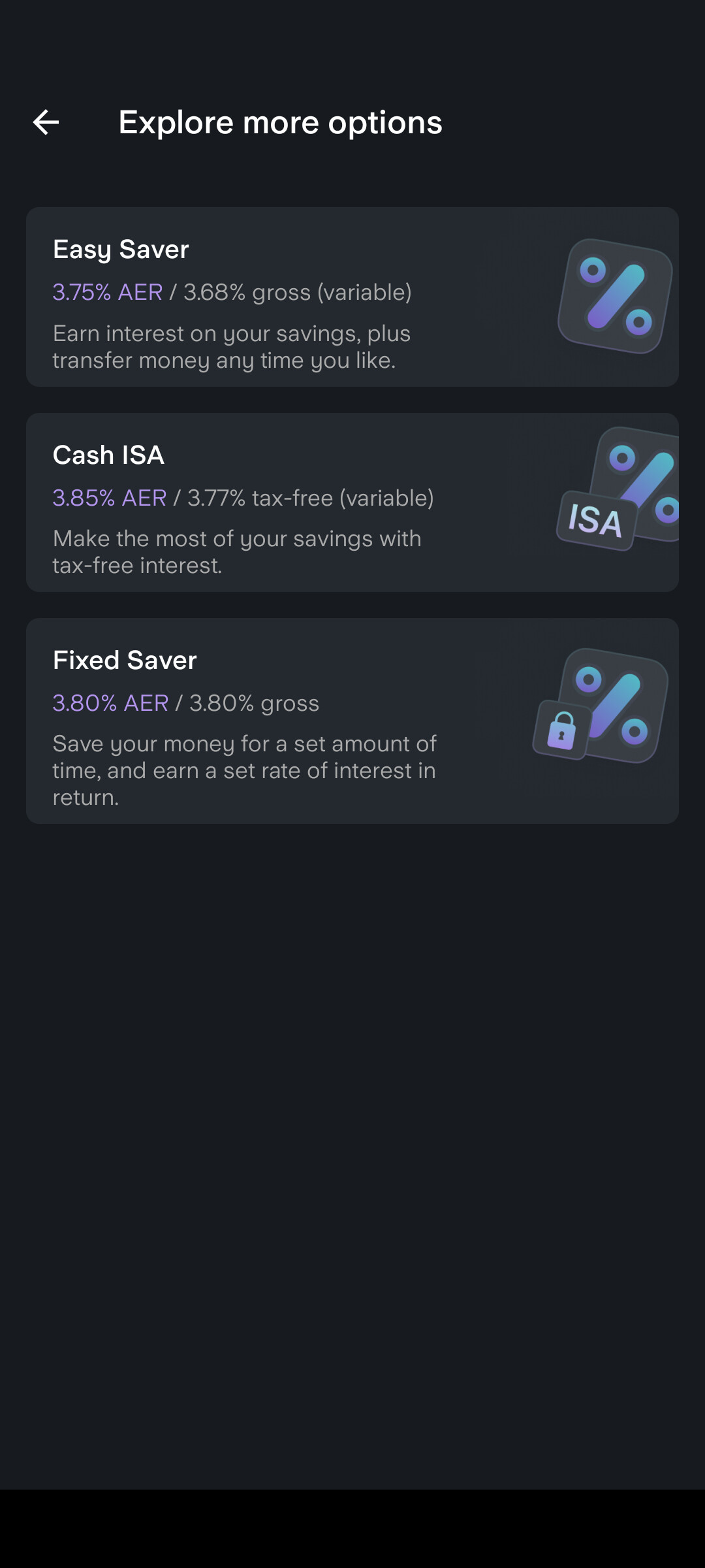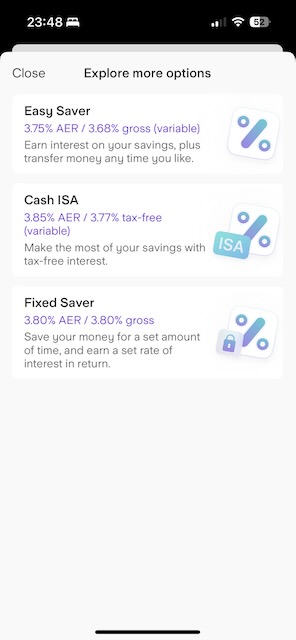 A cash ISA has been added. Doesn’t look like you can transfer in, or set up automatic transfers from your main balance, so another chocolate teapot account to go with the Easy Saver.