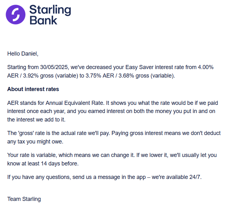For anyone with an Easy Saver, the interest rate is now 3.75% AER: